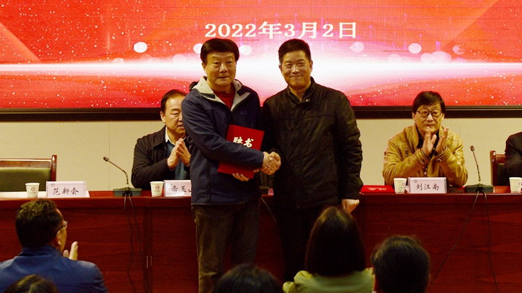 (范新會(huì)為劉江南教授頒發(fā)聘書)