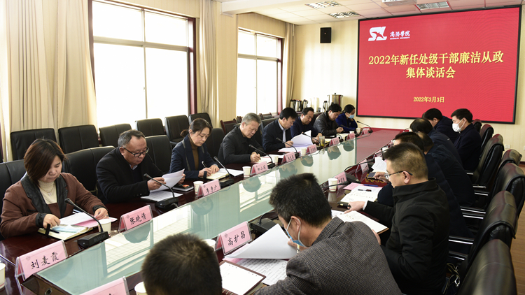 3月3日上午,我校召開2022年新任處級(jí)干部廉潔從政集體談話會(huì)。校黨委書記張志昌出席會(huì)議并講話,黨委副書記彭虎軍主持會(huì)議。紀(jì)委、組織部負(fù)責(zé)人及21名新任處級(jí)干部參加會(huì)議。
