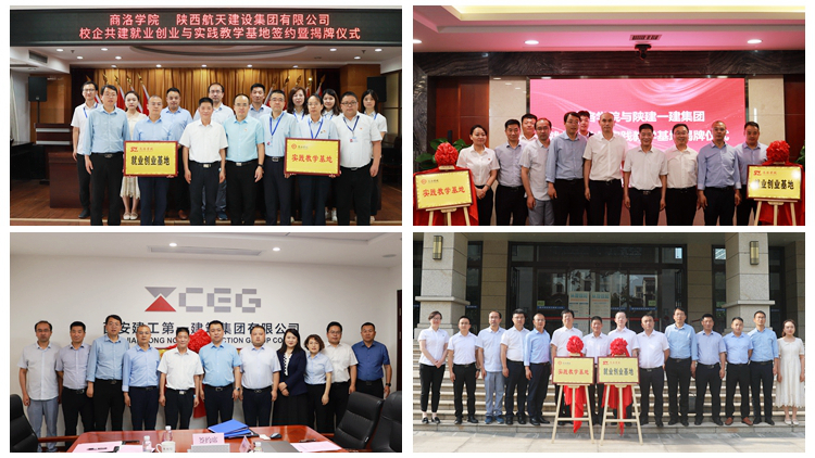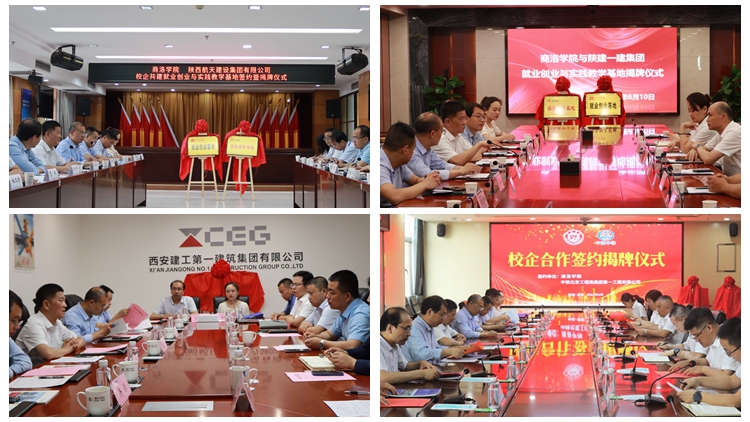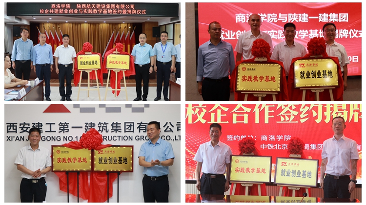 范新會(huì)分別與陜西航天建設(shè)集團(tuán)有限公司總經(jīng)理王明虎,陜西建工第一建設(shè)集團(tuán)有限公司工會(huì)主席、紀(jì)委書記袁勇,西安建工第一建筑集團(tuán)有限公司董事長(zhǎng)李寶龍,中鐵北京工程局集團(tuán)第一工程有限公司黨委副書記、紀(jì)委書記王晉偉共同為就業(yè)創(chuàng)業(yè)基地和實(shí)踐教學(xué)基地揭牌。