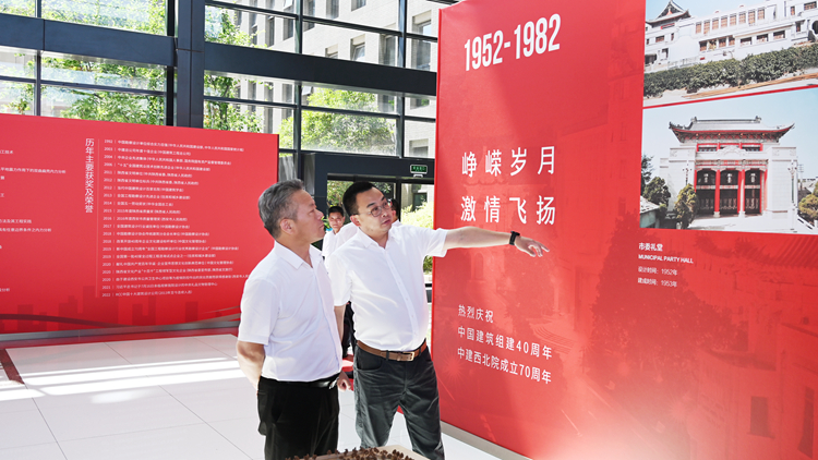 會前,張志昌、范新會、郭瑾一行在中國建筑西北設計研究院有限公司相關負責人的陪同下參觀了70周年展廳和綠色能源院。