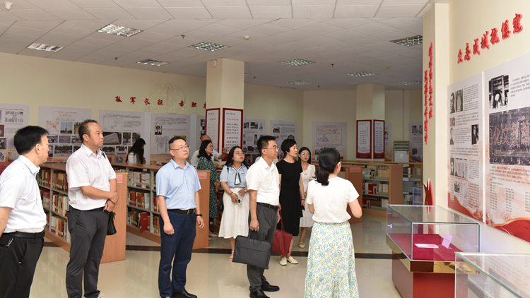 會后,邱必震一行實地參觀考察了我校紅色文化資料館、丹鳳棣花實踐教學(xué)基地等處。
