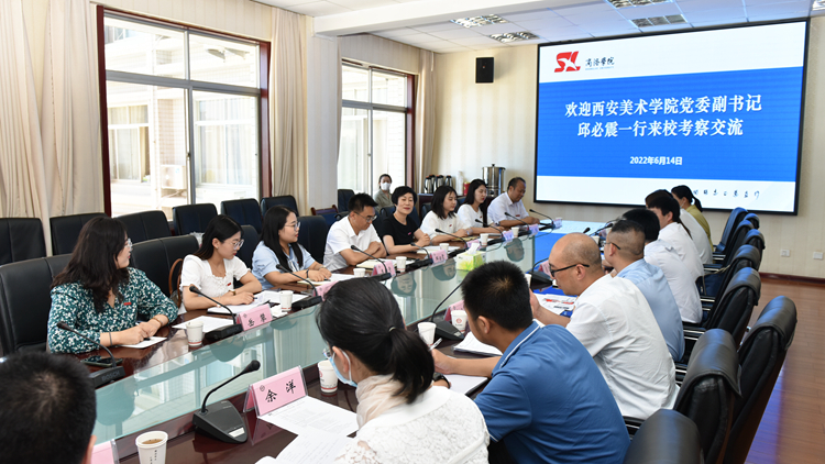 為深入貫徹落實習近平總書記關(guān)于思政課建設(shè)重要論述,落實省委高教工委、省教育廳建立重點馬克思主義學(xué)院對口幫扶普通馬克思主義學(xué)院機制的要求,扎實推動思政課內(nèi)涵式高質(zhì)量發(fā)展建設(shè),6月14日,西安美術(shù)學(xué)院黨委副書記邱必震一行來??疾旖涣?。校黨委書記張志昌,黨委副書記彭虎軍出席座談會。我校馬克思主義學(xué)院與商洛職業(yè)技術(shù)學(xué)院馬克思主義學(xué)院負責人及部分教師代表參加座談。