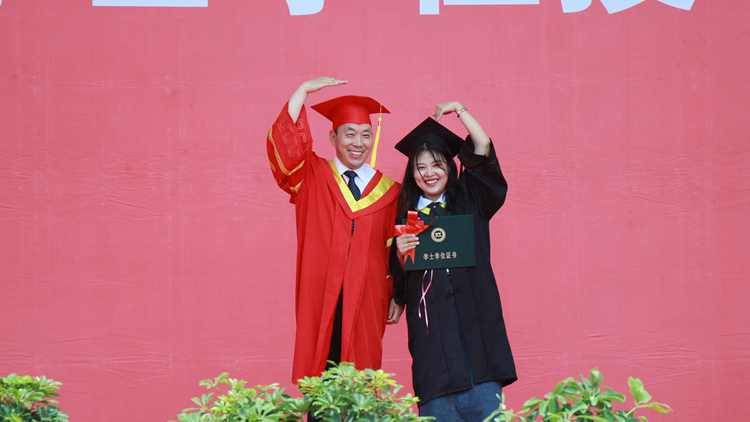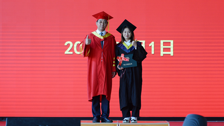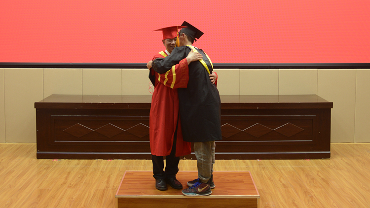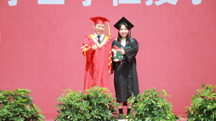 畢業(yè)典禮在校歌《正道直行做棟梁》中圓滿結(jié)束,學(xué)位授予儀式分別在北新街校區(qū)體育場、圖書館二樓報告廳和丹江校區(qū)體育館同時進(jìn)行。畢業(yè)生們依次上臺,由校領(lǐng)導(dǎo)范新會、彭虎軍、劉寶盈、王新軍為獲得學(xué)士學(xué)位的畢業(yè)生正冠撥穗,頒發(fā)學(xué)位證書,并與同學(xué)們一一合影留念。