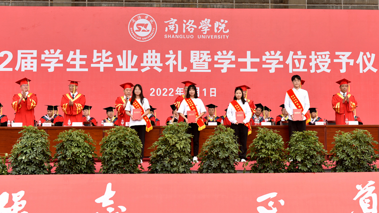 副校長劉寶盈宣讀了商洛學(xué)院2022屆畢業(yè)生資格審查通報、學(xué)士學(xué)位授予決定、教育廳關(guān)于表彰2022屆陜西高校優(yōu)秀畢業(yè)生和優(yōu)秀學(xué)生干部的通報、商洛學(xué)院優(yōu)秀畢業(yè)生表彰決定、商洛學(xué)院“奉獻(xiàn)基層、服務(wù)邊疆”優(yōu)秀畢業(yè)生表彰決定、商洛學(xué)院校友總會聘任2022屆校友聯(lián)絡(luò)員通知。思政1801班韓冰等29名同學(xué)被授予“省級優(yōu)秀畢業(yè)生”榮譽(yù)稱號,思政1801班羅曉妮等111名同學(xué)被授予商洛學(xué)院2022屆“優(yōu)秀畢業(yè)生”榮譽(yù)稱號,思政1802班石鑫等12名同學(xué)被評為“奉獻(xiàn)基層、服務(wù)邊疆”優(yōu)秀畢業(yè)生,葉少露等101名同學(xué)被聘任為2022屆校友聯(lián)絡(luò)員。在熱烈的掌聲中,校領(lǐng)導(dǎo)為優(yōu)秀畢業(yè)生代表頒發(fā)了證書,為校友聯(lián)絡(luò)員頒發(fā)了聘書。