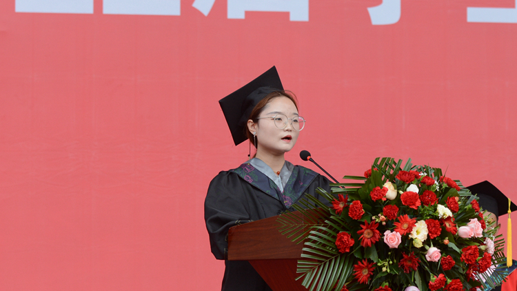 在校生代表、經(jīng)濟(jì)管理學(xué)院學(xué)生任璐瑤代表全體在校生向2022屆畢業(yè)生送上最真誠的祝福,祝福學(xué)長、學(xué)姐們前程似錦,再相逢依舊如故,容顏依舊不變、初心仍似少年!