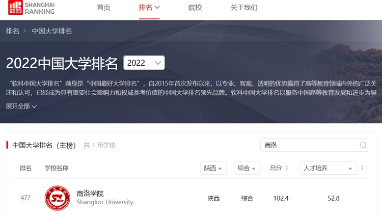 作為具有重要社會影響力和權威參考價值的高等教育專業(yè)評價機構,2022年4月19日,軟科正式發(fā)布“2022軟科中國大學排名”,我校位列全國第477名,陜西省第23名。2018年,軟科“世界大學學術排名(ARWU)”首次發(fā)布2018“中國最好大學排名”內地600強名單,我校位居全省第26名,全國第572名。5年來,我校辦學實力與核心競爭力逐年穩(wěn)步提升,全國排名上升95個位次,省內排名上升3個位次,辦學影響力和社會聲譽顯著增強。