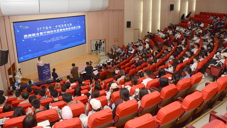 商洛市政府辦公室、商務(wù)局、發(fā)改委、科技局、農(nóng)業(yè)農(nóng)村局、文旅局相關(guān)負(fù)責(zé)人,南京市商務(wù)局、西安市商務(wù)局相關(guān)工作人員,中國聯(lián)通商洛分公司總經(jīng)理,商洛市各縣區(qū)商務(wù)主管部門負(fù)責(zé)人、電商中心主任,相關(guān)企業(yè)負(fù)責(zé)人、企業(yè)直播人員,我校科技處負(fù)責(zé)人和經(jīng)濟(jì)管理學(xué)院師生代表共400余人參加啟動儀式。