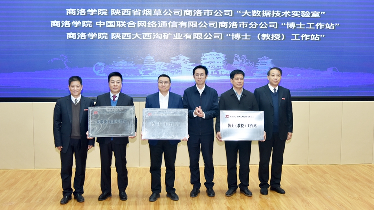 在熱烈的掌聲中,陳發(fā)虎、趙璟為“商洛康養(yǎng)產(chǎn)業(yè)研究院”揭牌。孫舉恒、張志昌共同為“秦嶺商洛生物醫(yī)藥產(chǎn)業(yè)知識產(chǎn)權(quán)研究中心”、“陜西省知識產(chǎn)權(quán)信息公共服務(wù)網(wǎng)點”、“商洛學(xué)院秦創(chuàng)原創(chuàng)新促進(jìn)中心工作站”揭牌。孫舉恒、范新會、王新軍共同為陜西煙草商洛分公司“大數(shù)據(jù)技術(shù)實驗室”、中國聯(lián)通商洛分公司“博士工作站”、大西溝礦業(yè)有限公司“博士(教授)工作站”授牌,商洛市煙草局局長洪煒、商洛聯(lián)通公司總經(jīng)理李建慶、大西溝礦業(yè)有限公司總經(jīng)理聶建倉代表企業(yè)接牌。