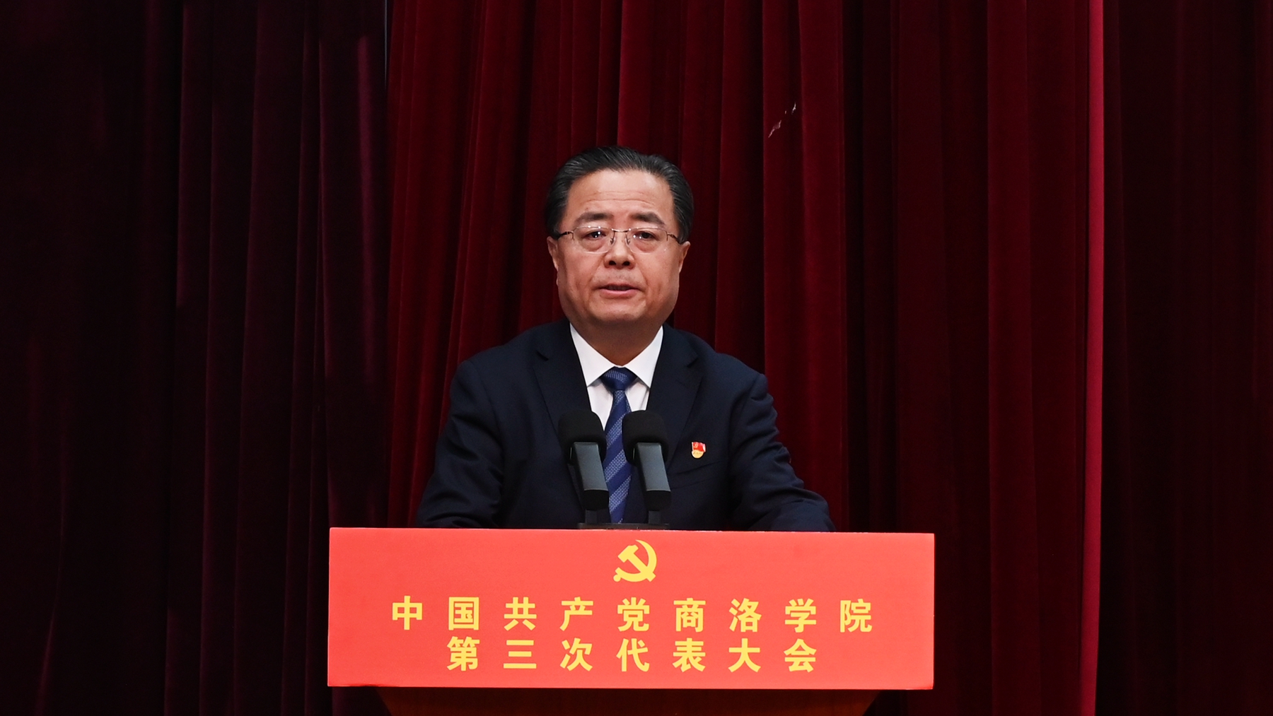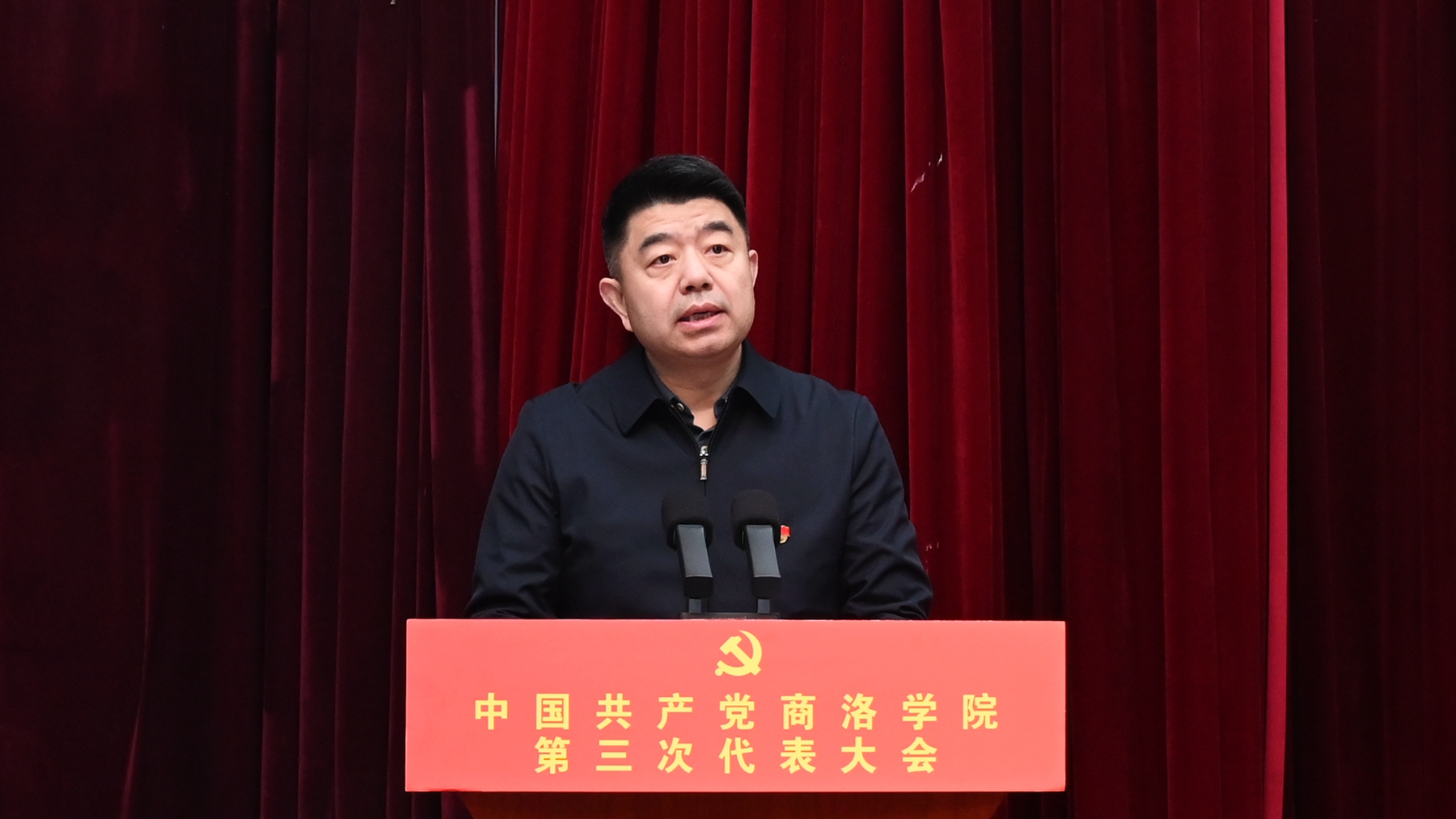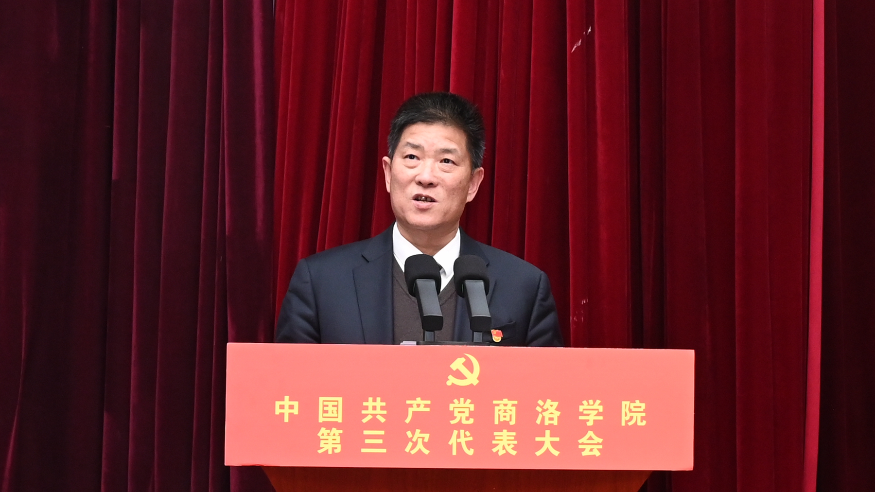 賈永安代表商洛市委、市政府對大會的勝利召開表示熱烈的祝賀。他表示,自我校第二次黨代會召開以來,全體黨員干部師生認真貫徹落實習近平新時代中國特色社會主義思想和習近平總書記歷次來陜考察重要講話重要指示精神,全面落實建設教育強國的時代重任,秉持立足商洛、面向地方、服務基層、培養(yǎng)應用型人才的辦學定位,不斷深化改革,加快發(fā)展,取得了有目共睹的好成績。在實現自身健康持續(xù)發(fā)展的同時,學校積極踐行服務地方使命,充分發(fā)揮高??萍佳邪l(fā)中心和人才高地的作用,引領商洛高新產業(yè)發(fā)展,助力地方脫貧攻堅和鄉(xiāng)村振興,為建設中國康養(yǎng)之都貢獻了重要力量。賈永安代表商洛市委、市政府對我校提出三點希望:一是扎實做好黨建工作,保持全面從嚴治黨的嚴基調;二是接續(xù)開拓奮進,書寫高質量發(fā)展的新篇章;三是踐行服務地方使命,構建校地融合發(fā)展的新格局。