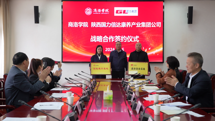 在其他與會人員的見證下,王新軍與林杰分別代表校企雙方簽訂《陜西國力信達康養(yǎng)產(chǎn)業(yè)集團有限公司商洛學(xué)院戰(zhàn)略合作框架協(xié)議》。劉寶盈代表學(xué)校為國力集團授《商洛學(xué)院就業(yè)創(chuàng)業(yè)基地》《商洛學(xué)院實踐教學(xué)基地》牌,朱啟有、李萌分別代表企業(yè)接牌。