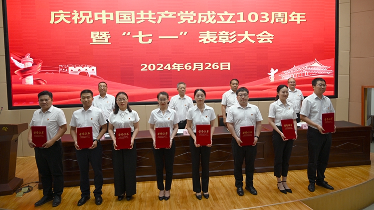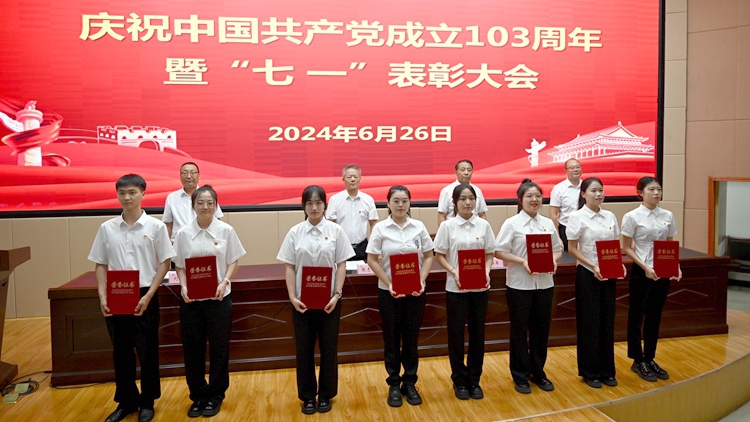 6月26日下午,我校在圖書館二樓報告廳召開慶祝中國共產(chǎn)黨成立103周年暨“七一”表彰大會。校黨委書記張志昌出席大會并講話。大會對36名優(yōu)秀共產(chǎn)黨員、15名優(yōu)秀黨務工作者、3個先進基層黨委和13個先進黨支部進行表彰。黨委委員、副校長劉寶盈、王新軍、郭瑾出席大會并向受表彰集體和個人代表頒發(fā)獎牌證書。大會由劉寶盈主持。