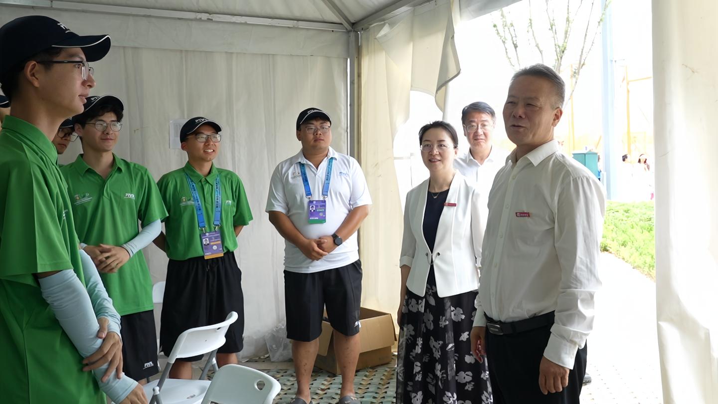 近日,2024國際排聯(lián)沙灘排球U19世界錦標(biāo)賽在商洛如火如荼進(jìn)行,商洛學(xué)院205名師生志愿者參加本次沙排世錦賽志愿服務(wù)工作,為賽事的順利進(jìn)行保駕護(hù)航。8月30日,商洛學(xué)院黨委書記張志昌、校長權(quán)雅寧、紀(jì)委書記王浩一行前往比賽現(xiàn)場,看望慰問學(xué)校師生志愿者。