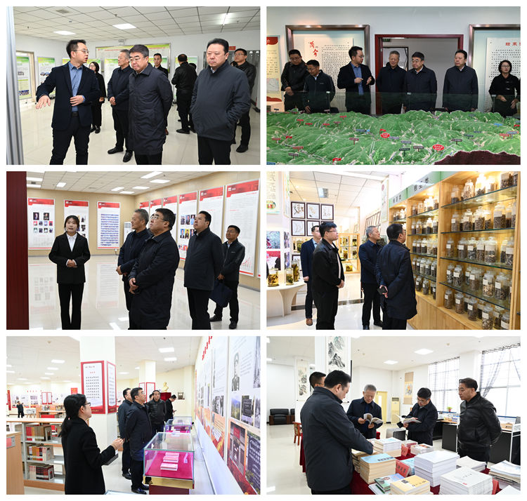 在張志昌、王新軍等的陪同下,趙曉林一行先后參觀考察了陜西省尾礦資源綜合利用重點(diǎn)實(shí)驗(yàn)室、商洛學(xué)院發(fā)展成就展、秦嶺植物標(biāo)本陳列室、植物學(xué)重點(diǎn)學(xué)科展室、商洛紅色文化資料館及商洛文化暨賈平凹研究中心。