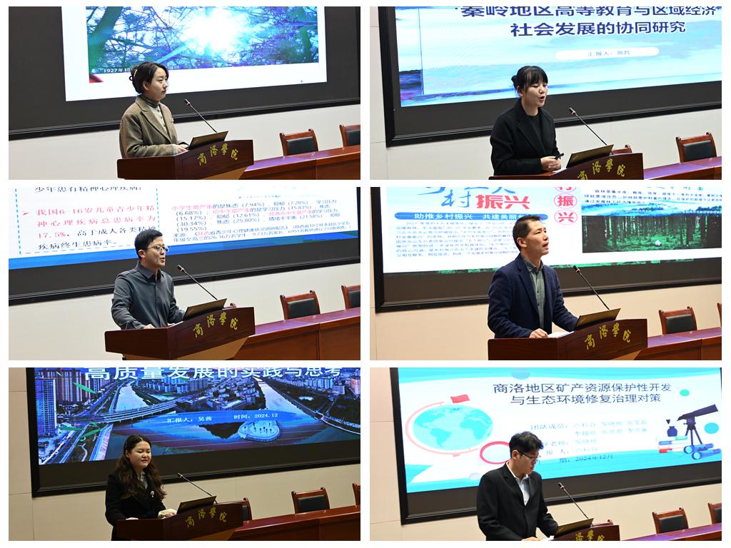 楊瑛娟、商哲、楊憲華、屈正庚、吳茜五位教師和盧科谷同學(xué)分別就商洛紅色旅游開發(fā)、秦嶺地區(qū)高等教育與區(qū)域經(jīng)濟(jì)社會協(xié)同發(fā)展、商洛市域中小學(xué)心理健康教育、商洛森林康養(yǎng)產(chǎn)業(yè)發(fā)展、賽事名城建設(shè)助推商洛經(jīng)濟(jì)高質(zhì)量發(fā)展、商洛地區(qū)礦產(chǎn)資源保護(hù)性開發(fā)與生態(tài)環(huán)境修復(fù)等主題進(jìn)行了學(xué)術(shù)交流。