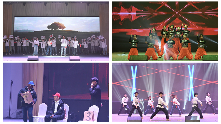 原創(chuàng)詩朗誦《遇見》,在時(shí)光長(zhǎng)河的波光里回顧了學(xué)校發(fā)展歷程,歌頌了2024年逐光而行的不凡成就,激勵(lì)廣大師生與學(xué)校一道載夢(mèng)飛翔。舞蹈《額爾古納河》展現(xiàn)了祖國(guó)山河的壯美與柔情,體現(xiàn)出人與自然的和諧共生。歌劇《沂蒙山》選段演繹了革命戰(zhàn)士大青山突圍、淵子崖戰(zhàn)役的崢嶸歷史。《我的大學(xué)時(shí)代》通過逗趣的相聲表演生動(dòng)再現(xiàn)了課堂奇遇、宿舍笑談的幽默時(shí)刻。明快靈動(dòng)的小合唱《唱得幸福落滿坡》,用歌聲把觀眾帶到了豐收的田野中,看到了農(nóng)民臉上洋溢的幸福笑容。二胡獨(dú)奏《戰(zhàn)馬奔騰》飽含著勇往直前的力量,訴說著英雄們的壯志豪情?!稇蚯?lián)唱》將眾多藝術(shù)形式巧妙聚集,唱念做打、五彩臉譜,一招一式盡顯東方之美。外籍教師羅杰一、王亮、艾瑪和國(guó)際創(chuàng)意課程學(xué)生合唱《We are the world》,用音樂展現(xiàn)了超越國(guó)界和文化的團(tuán)結(jié)友愛。魔術(shù)表演《選擇》以絕妙的構(gòu)思、精湛的手法為觀眾帶來無盡驚喜。舞蹈表演《醉春風(fēng)》,在水墨煙雨中弄花影、戲春風(fēng),展現(xiàn)了草長(zhǎng)鶯飛、杏花春雨的江南美景?!读餍懈枨疅烦懬啻褐瑁o燦爛的成長(zhǎng)歲月點(diǎn)燃生生不息的花火。《武動(dòng)華章》將太極的柔、雙截棍的巧、跆拳道的剛匯聚一處,在動(dòng)靜之間帶領(lǐng)觀眾走進(jìn)武術(shù)世界。健身操舞《青春就這young》整齊劃一的動(dòng)作、自信美麗的笑容,展現(xiàn)了商院學(xué)子積極向上的精神風(fēng)貌。