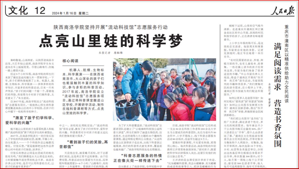 《人民日?qǐng)?bào)》專題報(bào)道商洛學(xué)院“流動(dòng)科技館”志愿服務(wù)工作