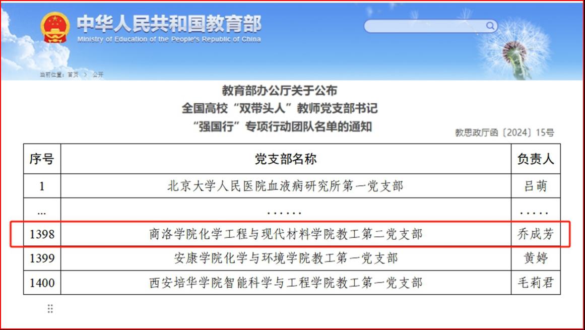 化材學(xué)院教工第二黨支部入選全國“雙帶頭人”教師黨支部書記“強(qiáng)國行”專項(xiàng)行動(dòng)團(tuán)隊(duì)