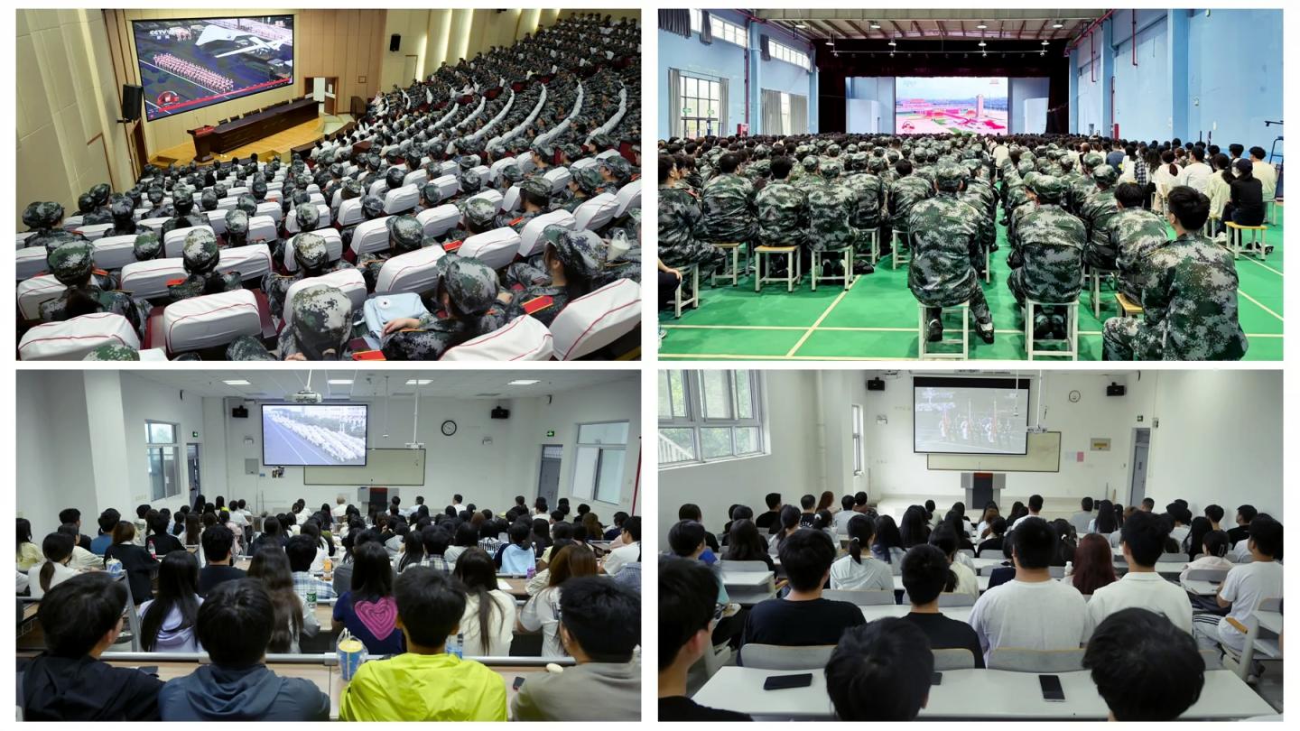 全體在校校領(lǐng)導(dǎo),各職能部門、各二級學(xué)院黨政主要負責人以及全??萍壱陨细刹吭谥鲿龉餐^看大會盛況。2025級新生、輔導(dǎo)員及其他無課師生在各分會場集中收看。大家精神振奮、熱情高漲,認真聆聽習(xí)近平總書記的重要講話,對閱兵式出場的各類方隊和新式武器裝備發(fā)出連連贊嘆,用熱烈的掌聲表達對祖國深深的祝福。