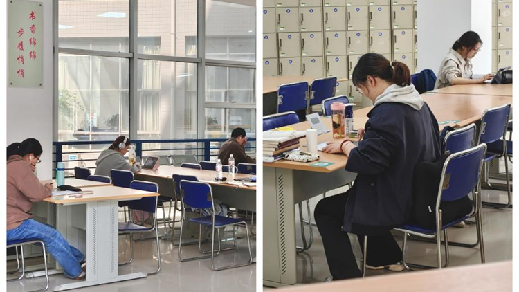 圖書館內(nèi)同樣是一派繁忙而寧靜的學習景象。所有閱覽室和自習區(qū)均正常開放,同學們或埋頭苦讀,或認真做著筆記,沉浸在知識的海洋里。