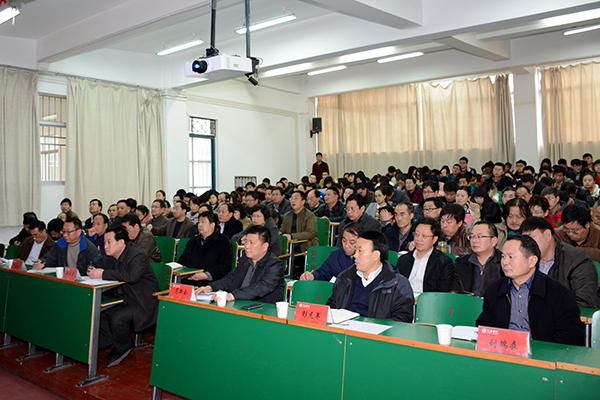 為進(jìn)一步推動(dòng)我校師生學(xué)習(xí)貫徹落實(shí)十八屆五中全會(huì)精神,12月9日,學(xué)校邀請(qǐng)陜西省委理論講師團(tuán)副團(tuán)長黨寧教授為師生做了題為《貫徹落實(shí)黨的十八屆五中全會(huì)精神,為全面建成小康社會(huì)而奮斗》的專題報(bào)告。校黨委委員范新會(huì)、王思懷、魏書堂、彭虎軍、劉寶盈、劉端森、高榮發(fā),全??萍?jí)以上領(lǐng)導(dǎo)干部、輔導(dǎo)員,思政部、人文學(xué)院政教系全體教師,“青馬”工程學(xué)員和學(xué)生代表聽取了報(bào)告。報(bào)告會(huì)由紀(jì)委書記王思懷主持。
