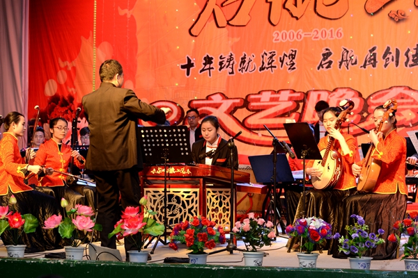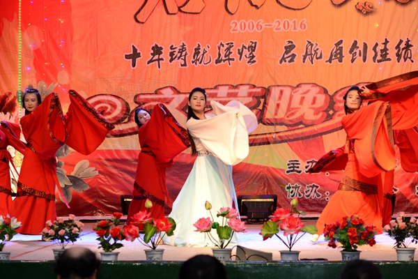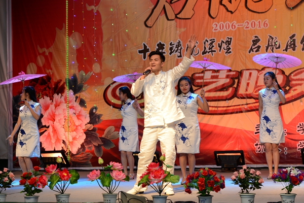 當(dāng)晚的大學(xué)生活動(dòng)中心四處洋溢著歡樂(lè)的節(jié)日氣氛。晚會(huì)在民樂(lè)《春節(jié)序曲》的精彩表演中拉開序幕。整場(chǎng)晚會(huì)形式多樣,精彩紛呈。歌舞、相聲、小品、魔術(shù)、朗誦等18個(gè)形式多樣、精彩紛呈的節(jié)目贏得了臺(tái)下觀眾們的陣陣喝彩。歌伴舞《秦嶺最美是商洛》,用優(yōu)美的歌聲和優(yōu)雅的舞蹈向大家展現(xiàn)了商洛美麗的地域風(fēng)情;漢服社的同學(xué)邁著輕快靈動(dòng)、曼妙翩躚的舞步,用一支舞蹈《相和歌》讓大家體會(huì)到了中華民族傳統(tǒng)文化的獨(dú)特魅力;魔術(shù)表演《閃耀奇跡》讓大家讓大家感受到了魔術(shù)的千變?nèi)f化,贏得了觀眾的陣陣掌聲;被同學(xué)們冠以“樓姨”昵稱的宿舍管理員用一場(chǎng)《大時(shí)代》的舞蹈將晚會(huì)氣氛的推向高潮;文傳學(xué)院教師張曉倩創(chuàng)作的詩(shī)歌《十年》以詩(shī)朗誦的形式描繪了出我校升本十年來(lái)的發(fā)展,讓師生們回顧了商洛學(xué)院十年來(lái)的變化與發(fā)展;晚會(huì)在一曲男女二重唱《走向復(fù)興》中完美落幕。