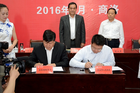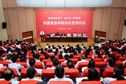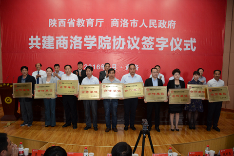 陜西省委高教工委辦公室,省教育廳高教處、財務(wù)處、發(fā)展規(guī)劃處、基教一處等有關(guān)處室負責人,商洛市發(fā)改委、規(guī)劃局、教育局、科技局、工信局、財政局、國土資源局、建設(shè)局、衛(wèi)計局、商丹園區(qū)管委會等政府部門、單位負責人,根植地方行動計劃合作單位代表,師生代表等參加簽字儀式。