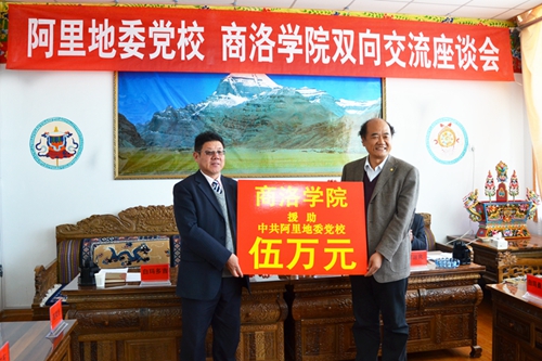 劉建林一行與中共西藏阿里地委黨校干部職工進(jìn)行座談交流,并代表學(xué)校向阿里地委黨校資助5萬元,用于支持該校學(xué)科專業(yè)建設(shè)。西藏阿里地委委員、行署副專員王彪,阿里地委黨校常務(wù)副校長白瑪多吉出席座談會(huì)。座談會(huì)由阿里地委黨校副校長郭運(yùn)良主持。