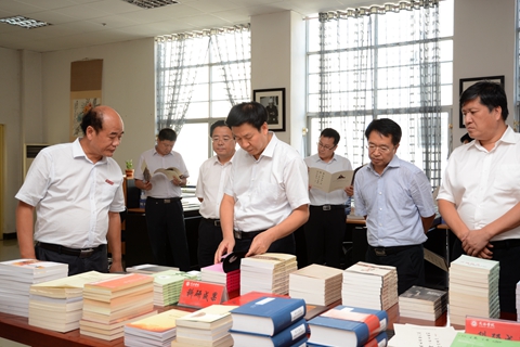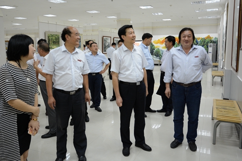 莊長興興致勃勃地參觀了商洛紅色文化資料館、商洛文化暨賈平凹研究中心和藝術(shù)展廳。他對學(xué)校依托地方紅色資源和文化資源建設(shè)特色展室,開展教學(xué)及科學(xué)研究工作給予了充分肯定。他還與藝術(shù)學(xué)院師生親切交談,了解秦嶺畫派創(chuàng)作情況,勉勵師生靜下心來,創(chuàng)作出更多更好的藝術(shù)作品。