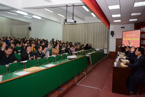 大會號召廣大教職工積極行動起來,在校黨委的領(lǐng)導(dǎo)下,高舉中國特色社會主義偉大旗幟,全面貫徹落實(shí)黨的十八大精神和習(xí)近平總書記系列重要講話精神,進(jìn)一步解放思想,與時俱進(jìn),開拓創(chuàng)新,深化改革,扎實(shí)工作,為把我校建成一流應(yīng)用型本科院校而努力奮斗!
