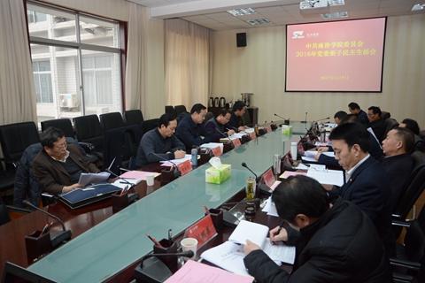 根據(jù)《中共陜西省委高教工委關(guān)于認(rèn)真開(kāi)好2016年度高校領(lǐng)導(dǎo)班子民主生活會(huì)的通知》有關(guān)要求,按照《商洛學(xué)院黨委班子2016年度民主生活會(huì)方案》,1月5日下午,我校召開(kāi)了以“學(xué)習(xí)貫徹黨的十八屆六中全會(huì)精神”為主題的黨委班子2016年民主生活會(huì)。省委第九巡視組副組長(zhǎng)周瓏,巡視專(zhuān)員韓升良、張曉黎,省委高教工委“兩學(xué)一做”學(xué)習(xí)教育第三督導(dǎo)組組長(zhǎng)賈崇吉出席會(huì)議。會(huì)議由校黨委副書(shū)記、副校長(zhǎng)范新會(huì)主持。全體黨委委員參加會(huì)議,黨政辦公室負(fù)責(zé)人列席會(huì)議。