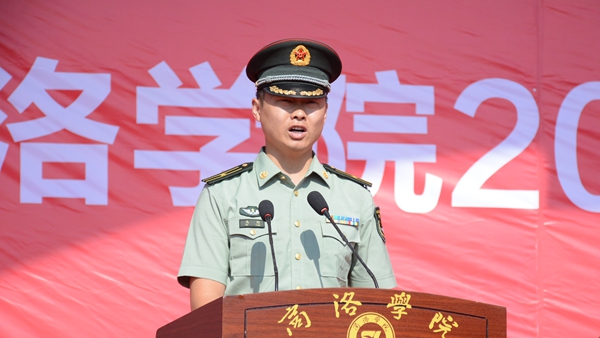 范新會代表全校師生員工對2017級新同學(xué)來商洛學(xué)院學(xué)習(xí)深造表示熱烈歡迎,對獲得“新生獎學(xué)金”的同學(xué)們表示熱烈祝賀,對承擔(dān)軍訓(xùn)任務(wù)的全體官兵表示衷心的感謝,并介紹了我校的辦學(xué)歷史、辦學(xué)定位、辦學(xué)理念、辦學(xué)特色和未來發(fā)展前景。范新會指出,建校以來,我校已為國家培養(yǎng)了4萬余名合格人才,今天的商洛學(xué)院已經(jīng)成為鑲嵌于商洛大地、丹江河畔的一張金色名片,一座為國家源源不斷培養(yǎng)和輸送優(yōu)秀人才的黌門圣殿,以強有力的人才支持、智力支撐、文化引領(lǐng)和科技服務(wù),持續(xù)推動著商洛區(qū)域經(jīng)濟社會和文化發(fā)展。