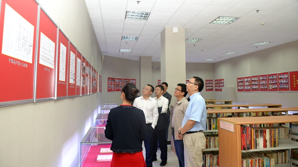 校黨委書記龍治剛代表學校對王振海一行來我??疾毂硎練g迎,并陪同參觀了我校校園環(huán)境建設、特色展廳和重點實驗室。在參觀過程中,龍治剛向王振海一行介紹了我校的發(fā)展歷史、區(qū)位優(yōu)勢、辦學定位、辦學特色和未來發(fā)展的戰(zhàn)略構(gòu)想。