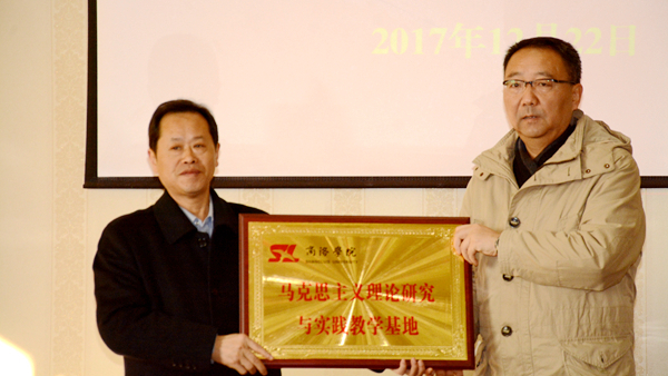在與會人員見證下,范新會與程修華在合作共建協(xié)議上簽字。張崗嶺、龍治剛分別為我校和市委黨校授牌。