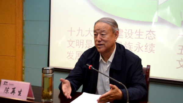 陳再生從建設(shè)新時(shí)代生態(tài)文明,要認(rèn)真學(xué)習(xí)深刻領(lǐng)會(huì)習(xí)近平關(guān)于中國特色生態(tài)文明建設(shè)的重要戰(zhàn)略思想;要明確“美麗中國”是社會(huì)文明形態(tài)演變進(jìn)步的更高要求;要明確生態(tài)文明的本質(zhì)內(nèi)涵和要求;要明確認(rèn)識(shí)生態(tài)文明建設(shè)的重大意義;要明確堅(jiān)持綠色發(fā)展是發(fā)展觀的一場深刻革命;要把生態(tài)建設(shè)融入經(jīng)濟(jì)、政治、文化、社會(huì)建設(shè)各方面和全過程;要堅(jiān)持以人民為中心,向人民提供公共生態(tài)產(chǎn)品;要不斷完善制度機(jī)制和政策法律;要積極參與國際合作,共建全球良好的生態(tài)環(huán)境九個(gè)方面為師生做了一場深刻而生動(dòng)的報(bào)告。他在報(bào)告中指出,新時(shí)代生態(tài)文明建設(shè)的重點(diǎn)任務(wù)是:推動(dòng)形成綠色發(fā)展方式、切實(shí)解決突出環(huán)境問題、加大生態(tài)系統(tǒng)保護(hù)力度、深化生態(tài)環(huán)保體制機(jī)制改革。他強(qiáng)調(diào),我們要積極貫徹落實(shí)習(xí)近平總書記在黨的十九大報(bào)告中提出的“加快生態(tài)文明體制改革、建設(shè)美麗中國”的重要精神,從身邊的小事做起,堅(jiān)持綠色發(fā)展道路,堅(jiān)持人與自然和諧相處。