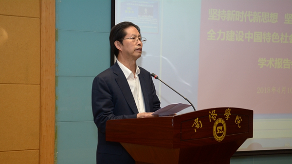 4月10日,陜西省決策咨詢委員會(huì)副主任、省人大常委會(huì)原副主任、省生態(tài)文明建設(shè)促進(jìn)會(huì)名譽(yù)會(huì)長陳再生來我校作《堅(jiān)持新時(shí)代新思想 堅(jiān)定綠色發(fā)展道路 全力建設(shè)中國特色社會(huì)主義生態(tài)文明》主題學(xué)術(shù)報(bào)告。我校黨委書記龍治剛、校長范新會(huì),陜西省人大常委會(huì)農(nóng)工委原副主任、省生態(tài)文明建設(shè)促進(jìn)會(huì)顧問周樹紅,省生態(tài)文明建設(shè)促進(jìn)會(huì)副秘書長張社柱,省環(huán)保廳宣教中心副主任石磊,省生態(tài)文明建設(shè)促進(jìn)會(huì)秘書長云嘉敏,商洛市決策咨詢委員會(huì)副主任、市人大常委會(huì)原副主任羅均讓,商洛市環(huán)保局副局長任云峰出席報(bào)告會(huì)。來自我校各二級(jí)學(xué)院的師生代表聆聽了報(bào)告。報(bào)告會(huì)由范新會(huì)主持。