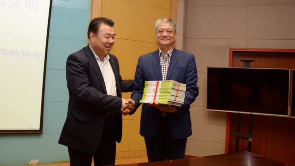 報(bào)告會(huì)上,陜西省環(huán)境保護(hù)宣傳教育中心向我校捐贈(zèng)了圖書,鼓勵(lì)我校繼續(xù)加強(qiáng)生態(tài)文明建設(shè)和生態(tài)環(huán)境保護(hù)。周樹紅在報(bào)告會(huì)上發(fā)表講話并指出,由陜西省生態(tài)文明建設(shè)促進(jìn)會(huì)和陜西省環(huán)境保護(hù)宣傳教育中心主辦的“傳播綠色理念,送您環(huán)保圖書”活動(dòng)是學(xué)習(xí)貫徹落實(shí)黨的十九大精神中關(guān)于加強(qiáng)生態(tài)文明建設(shè)相關(guān)要求的重要舉措,旨在提高全民環(huán)保意識(shí),建設(shè)綠色家園,提高公眾保護(hù)環(huán)境的自覺性,促進(jìn)新時(shí)代我省生態(tài)文明建設(shè)穩(wěn)步向前發(fā)展。