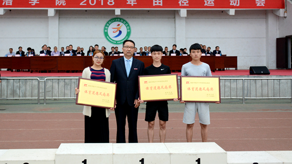 在熱烈的掌聲中,黨委書(shū)記龍治剛為團(tuán)體總分前三名、體育道德風(fēng)尚獎(jiǎng)獲獎(jiǎng)學(xué)院頒獎(jiǎng)。紀(jì)委書(shū)記王思懷、黨委副書(shū)記彭虎軍分別為男子總分前三名、女子總分前三名獲獎(jiǎng)學(xué)院頒獎(jiǎng)。
