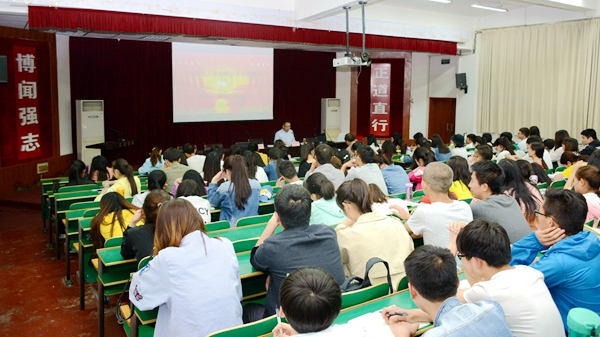 5月7日,校黨委書記龍治剛以《與大學生入黨積極分子談理想信念》為題,為生物學院2018年入黨積極分子和全體學生黨員上了一堂立意高遠、內涵豐富、振奮人心的黨課。生物學院黨總支負責人和各學生黨支部書記參加了黨課學習。