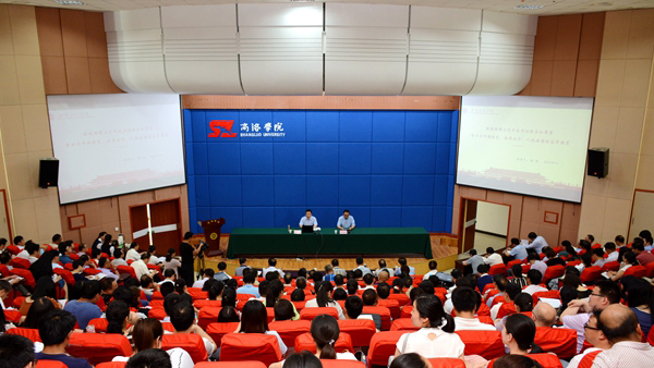 龍治剛、彭虎軍在主持報(bào)告會(huì)時(shí)指出,兩場報(bào)告主題突出、思想深刻、娓娓道來、情真意切,集中闡述了習(xí)近平教育思想,對(duì)于我校建設(shè)一流應(yīng)用型本科院校、培養(yǎng)擔(dān)當(dāng)民族復(fù)興大任的時(shí)代新人具有啟發(fā)借鑒意義。龍治剛對(duì)全校進(jìn)一步學(xué)習(xí)貫徹習(xí)近平新時(shí)代中國特色社會(huì)主義思想,提出了四點(diǎn)要求:一是切實(shí)把握精神實(shí)質(zhì),系統(tǒng)完整學(xué)習(xí),全面準(zhǔn)確領(lǐng)會(huì),在“學(xué)懂弄通做實(shí)”上下功夫;二是緊密結(jié)合“一流學(xué)院”和學(xué)校當(dāng)前面臨的形勢任務(wù),通過學(xué)習(xí),把習(xí)近平新時(shí)代中國特色社會(huì)主義思想轉(zhuǎn)化為立德樹人的育人體系、工作舉措、教學(xué)模式、育人模式;三是緊密結(jié)合學(xué)校中心工作,科學(xué)謀劃、貫徹落實(shí)習(xí)近平新時(shí)代中國特色社會(huì)主義思想的具體舉措和任務(wù)清單,明確時(shí)間表和路線圖,確保落實(shí)見效、落地見效;四是全校師生要深入學(xué)習(xí)領(lǐng)會(huì)、準(zhǔn)確把握習(xí)近平新時(shí)代中國特色社會(huì)主義思想的思想精髓和核心要義,內(nèi)化于心、外化于行,自覺以習(xí)近平新時(shí)代中國特色社會(huì)主義思想為指引,堅(jiān)定理想信念,勇?lián)鷷r(shí)代使命!