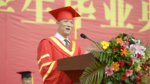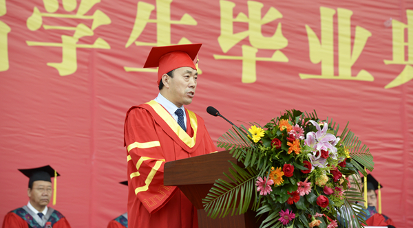 校長(zhǎng)范新會(huì)以《不忘初心 砥礪奮進(jìn) 做新時(shí)代的奮斗者》為題發(fā)表了情真意切的講話。他深情地說,“母?!笔且粋€(gè)溫暖而幸福的字眼,是世界上最質(zhì)樸的一種情結(jié),是最為珍貴的人生記憶。過去的四年,學(xué)校事業(yè)蓬勃發(fā)展,蒸蒸日上。你們與學(xué)校共同成長(zhǎng)、共同進(jìn)步,追求理想,砥礪前行,在這里磨礪了意志,增長(zhǎng)了才干。你們用奮斗點(diǎn)亮了大學(xué)時(shí)光,為學(xué)校贏得了無數(shù)榮譽(yù),你們的拼搏精神和青春故事已經(jīng)深深地鐫刻在母校的記憶里!在這依依惜別的時(shí)刻,母校和老師對(duì)你們不舍再見,更為你們感到驕傲!