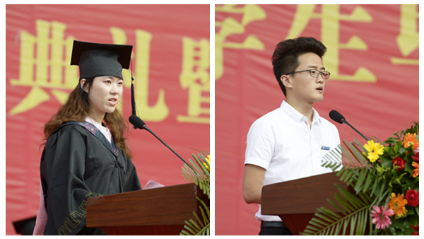 經(jīng)濟(jì)管理學(xué)院會(huì)計(jì)學(xué)專業(yè)1503班趙文輝代表全體在校生向2018屆畢業(yè)生送上最真誠的祝福,愿他們“博聞強(qiáng)志展鴻圖,正道直行做棟梁”,不忘初心、繼續(xù)前進(jìn),事業(yè)有成,幸福安康!