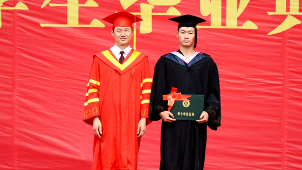 在學(xué)士學(xué)位授予儀式上,校長(zhǎng)范新會(huì)、黨委副書記彭虎軍、副校長(zhǎng)劉勇分別為獲得學(xué)士學(xué)位的畢業(yè)生正冠撥蘇、頒發(fā)學(xué)位證書,并與他們一 一合影留念。