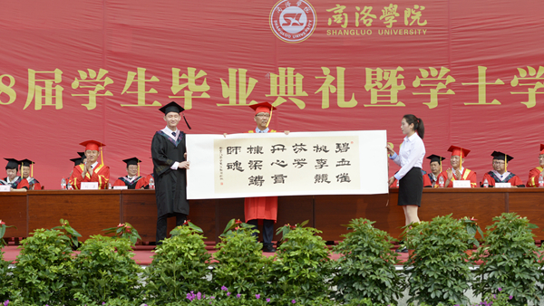 副校長(zhǎng)劉勇宣讀了商洛學(xué)院2018屆畢業(yè)生畢業(yè)資格及學(xué)士學(xué)位授予資格審核結(jié)果、優(yōu)秀畢業(yè)生及“奉獻(xiàn)基層 服務(wù)邊疆”優(yōu)秀畢業(yè)生表彰決定。思政1402班常文潔等126名同學(xué)被授予“優(yōu)秀畢業(yè)生”榮譽(yù)稱號(hào),思政1402班王聰?shù)?0名同學(xué)被評(píng)為“奉獻(xiàn)基層 服務(wù)邊疆”優(yōu)秀畢業(yè)生。在熱烈的掌聲中,校領(lǐng)導(dǎo)為優(yōu)秀畢業(yè)生代表頒發(fā)了證書。