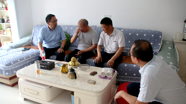 在黨委委員、組織部部長郭瑾的陪同下,龍治剛、范新會先后來到患病困難黨員郭建文的工作崗位和何志奇的家中,仔細(xì)詢問他們的身體情況、治療狀況,關(guān)心了解他們的工作現(xiàn)狀和生活起居,鼓勵他們戰(zhàn)勝疾病,保持積極樂觀的心態(tài),勇敢面對生活,并表示會叮囑學(xué)校相關(guān)部門幫助他們解決實際困難,盡力關(guān)心好、照顧好他們的生活和工作。