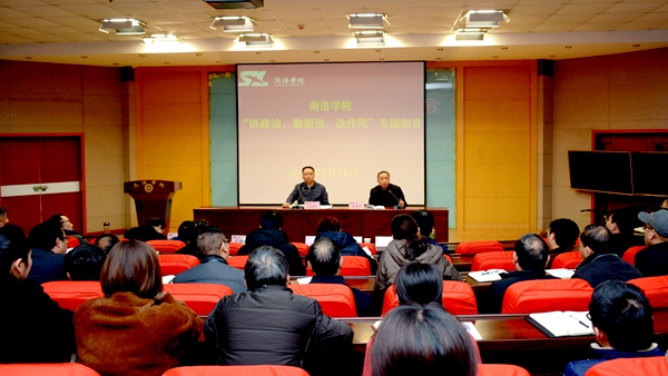為進(jìn)一步推動(dòng)“講政治、敢擔(dān)當(dāng)、改作風(fēng)”專題教育扎實(shí)有效的開展,根據(jù)中共陜西省紀(jì)委駐教育廳紀(jì)檢組的統(tǒng)一安排部署和中共商洛市委組織部《關(guān)于認(rèn)真開展〈一抓到底正風(fēng)紀(jì)〉學(xué)習(xí)討論的通知》,1月16日,我校召開“講政治、敢擔(dān)當(dāng)、改作風(fēng)”專題教育學(xué)習(xí)會(huì)。