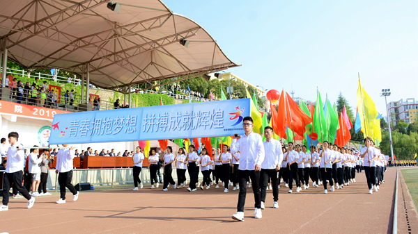 4月18日上午,風(fēng)晴日朗、天高云淡,體育場上彩旗招展、熱鬧非凡,我校2019年田徑運(yùn)動(dòng)會(huì)正式開幕。黨委書記龍治剛、校長范新會(huì)、紀(jì)委書記王思懷、副校長魏書堂、黨委副書記彭虎軍、副校長劉寶盈,各二級教學(xué)單位黨政負(fù)責(zé)人和各職能部門負(fù)責(zé)人出席開幕式,與全校師生共同觀看了開幕式文體表演。