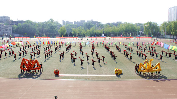 開幕式文體表演亮點(diǎn)頗多,精彩紛呈。我校航模隊(duì)與商洛市航空運(yùn)動(dòng)協(xié)會(huì)夢想飛行表演隊(duì)的航模表演率先開場,航模飛機(jī)在激昂的音樂聲中搏擊長空,升降翻轉(zhuǎn),劃出一道道優(yōu)美的弧線。建工學(xué)院學(xué)生以紅扇跳勁舞,龍虎相隨,青春激情,以歡快的舞姿、動(dòng)感的隊(duì)形充分展現(xiàn)青春活力。化材學(xué)院學(xué)生用熱情歡快的啦啦操和“1949”“70”的隊(duì)形,表達(dá)對祖國深深的熱愛與誠摯的祝福。數(shù)計(jì)學(xué)院學(xué)生以整齊優(yōu)雅的華爾茲雙人舞,展現(xiàn)學(xué)子儒雅優(yōu)秀的一面,用“SLXY"圖樣的隊(duì)形表達(dá)自己對學(xué)校美好明天的祝福。藝術(shù)學(xué)院學(xué)生身著藏族、傣族、蒙古族、佤族、維吾爾族,朝鮮族、苗族等多個(gè)民族服裝,結(jié)合現(xiàn)代舞蹈動(dòng)作,在愛我中華的樂曲中展現(xiàn)中華民族多元文化風(fēng)采和我校學(xué)子的勃勃生機(jī)。