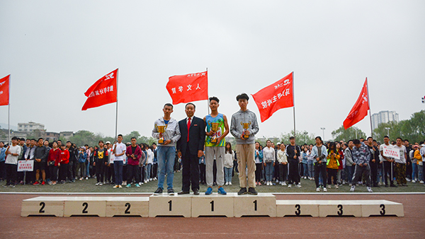 在熱烈的掌聲中,龍治剛為獲得體育道德風尚獎的學院頒獎,范新會為團體總分前三名獲獎學院頒獎,王思懷、劉寶盈分別為男子總分前三名與女子總分前三名獲獎學院頒獎。