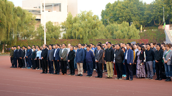 為加強(qiáng)對(duì)師生的愛(ài)國(guó)主義教育,9月30日,我校在體育場(chǎng)舉行“慶祝新中國(guó)成立70周年”主題升國(guó)旗儀式。黨委書(shū)記龍治剛、黨委副書(shū)記、校長(zhǎng)范新會(huì),紀(jì)委書(shū)記王思懷,黨委副書(shū)記彭虎軍,副校長(zhǎng)劉寶盈、劉勇,黨委委員王新軍、李超、楊存典、張向東、郭瑾,全校教職工、人文學(xué)院全體學(xué)生共計(jì)2000余人參加活動(dòng)。