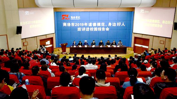 為認真貫徹落實《新時代公民道德建設(shè)實施綱要》,汲取榜樣力量,提高道德建設(shè)水平,11月7日,商洛市2019年道德模范、身邊好人巡講團走進我校,為師生作了一場精彩感人的報告。校黨委副書記彭虎軍,商洛日報社副社長、商洛市創(chuàng)文辦副主任唐淑君出席報告會并講話。